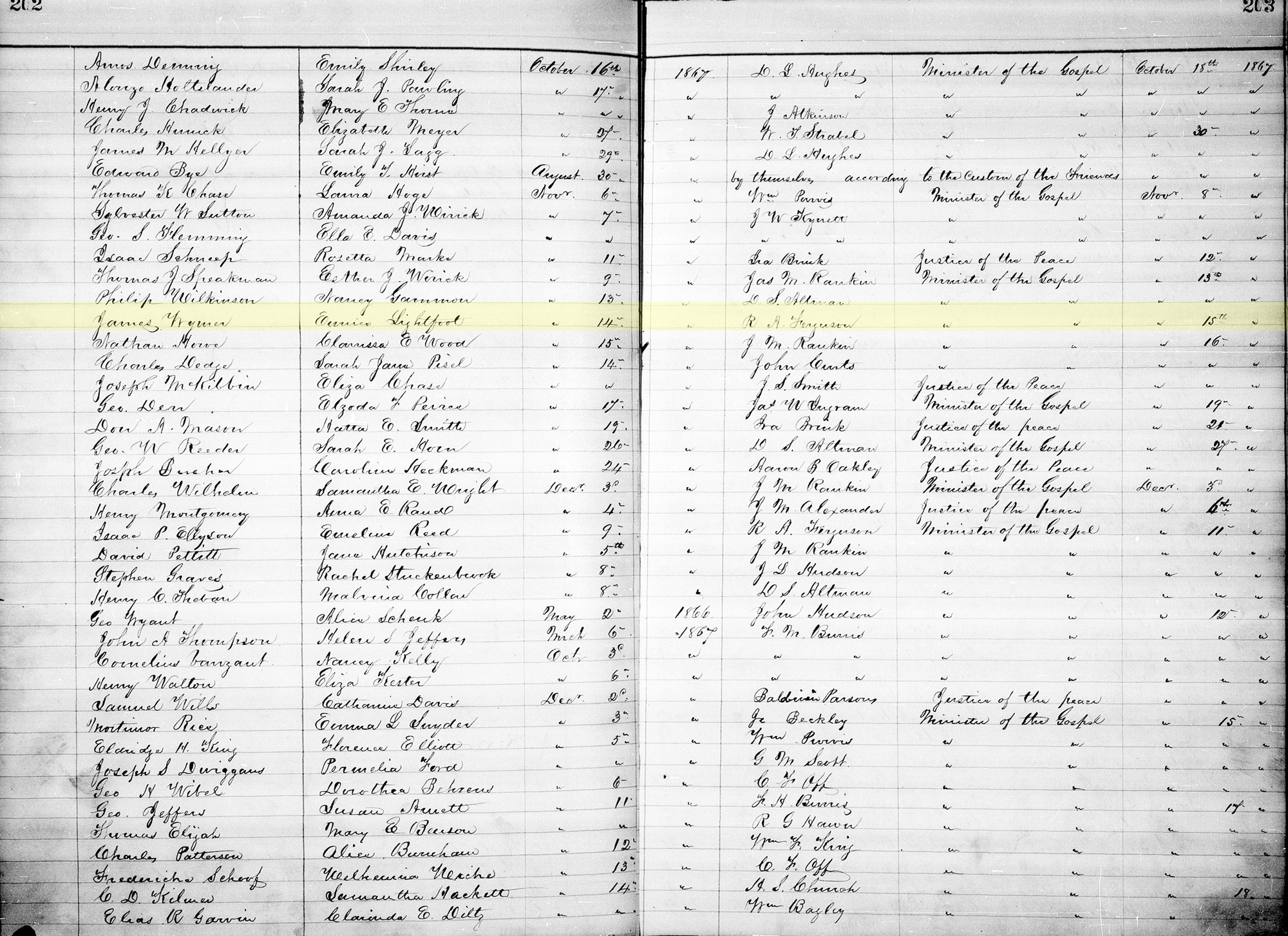 • Marriage Image: 14 November 1867, in Tipton, IA. • They appeared on the 1870 US Census in Iowa Township, Cedar County, IA on 26 August 1870. 5 • They appeared on the 1880 US Census in Iowa Township, Cedar County, IA on June 1880. 2 • They appeared on the 1885 Iowa State Census in Iowa Township, Cedar County, IA on 20 April 1885. 6 • They appeared on the 1895 Iowa State Census in Iowa Township, Cedar County, IA on January 1895. 7