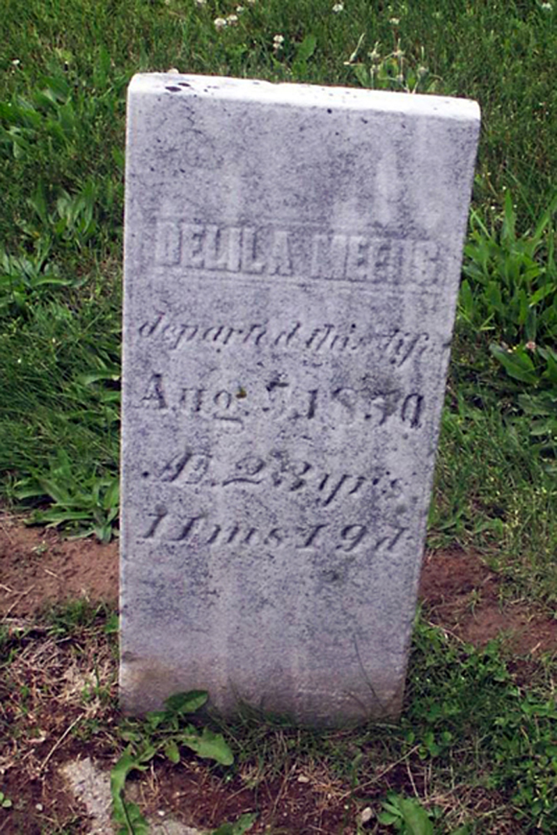 • She was buried after 5 August 1850 in the Bethany Cemetery in Washington, IN. Delila married William Coleman Meads, son of William Meads and Mary Ann Coleman, about 1843.1 (William Coleman Meads was born on 31 March 1824 in , Daviess County, IN,2 3 4 5 6 died on 24 January 1898 in Menoken Township, Shawnee County, KS 6 and was buried on 28 January 1898 in Topeka, KS 6.) |