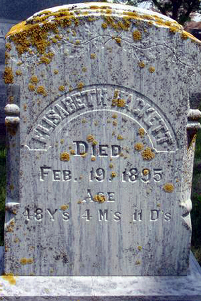 • She was buried on 23 February 1895 in the Ida Grove Cemetery in Ida Grove, IA. Elisabeth married Alfred Lytle Howser, son of John Howser and Elytha Jane Bryan, on 23 March 1865 in , Logan County, IL.1 2 3 The marriage ended in divorce after 1880. (Alfred Lytle Howser was born on 6 September 1844 in , Logan County, IL,4 6 7 8 died on 2 February 1917 in Sawtelle, CA 4 6 and was buried after 2 February 1917 in Los Angeles, CA 6.)