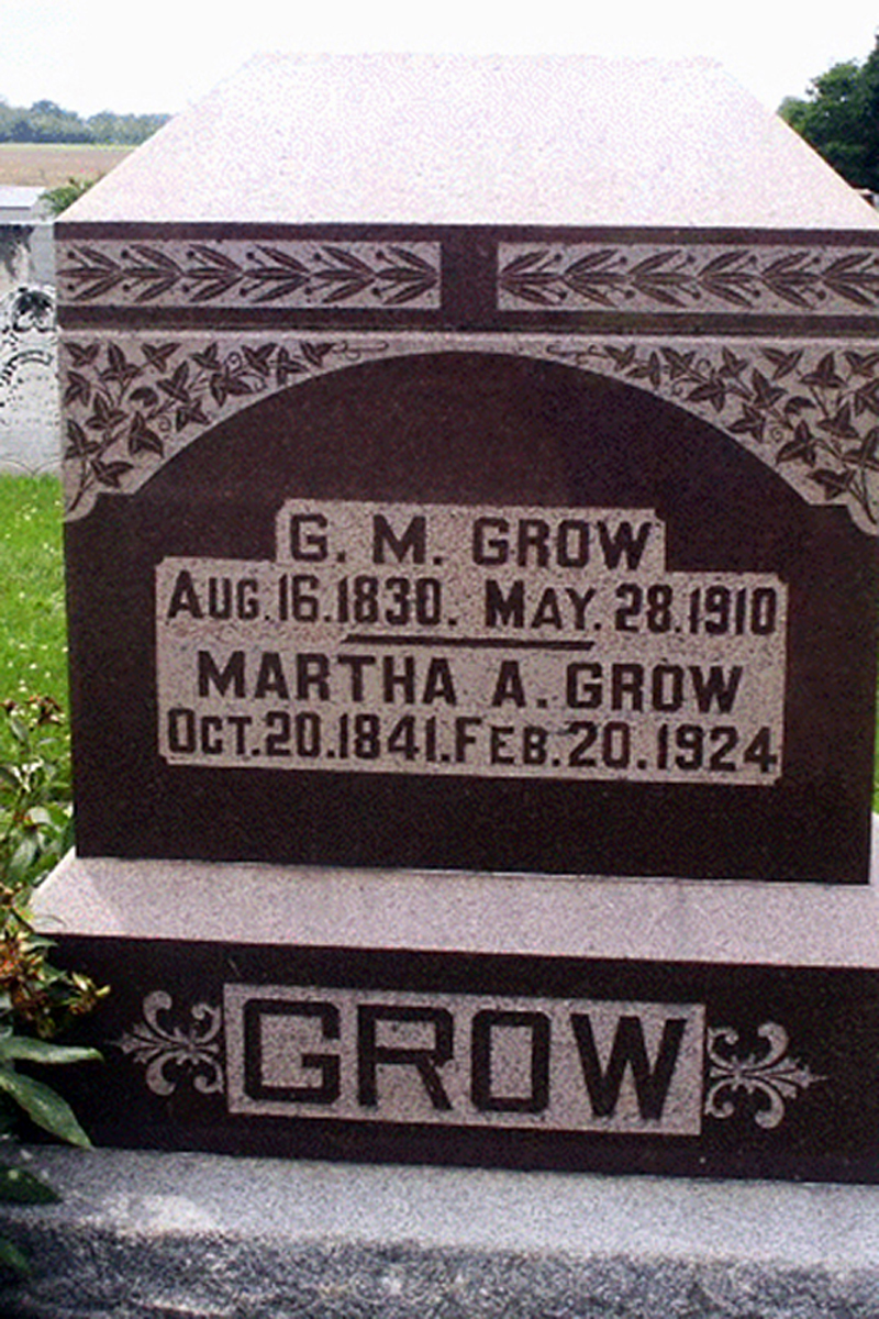 • She was buried after 20 February 1924 in the Bethany Cemetery in Washington, IN. Martha married George Milton Grow, son of Christopher Grow and Mary Arnspiger, on 21 April 1868 in , Daviess County, IN.1 2 (George Milton Grow was born on 16 August 1830 in Kentucky,4 6 died on 28 May 1910 in Washington, IN 6 and was buried after 28 May 1910 in Washington, IN 6.)