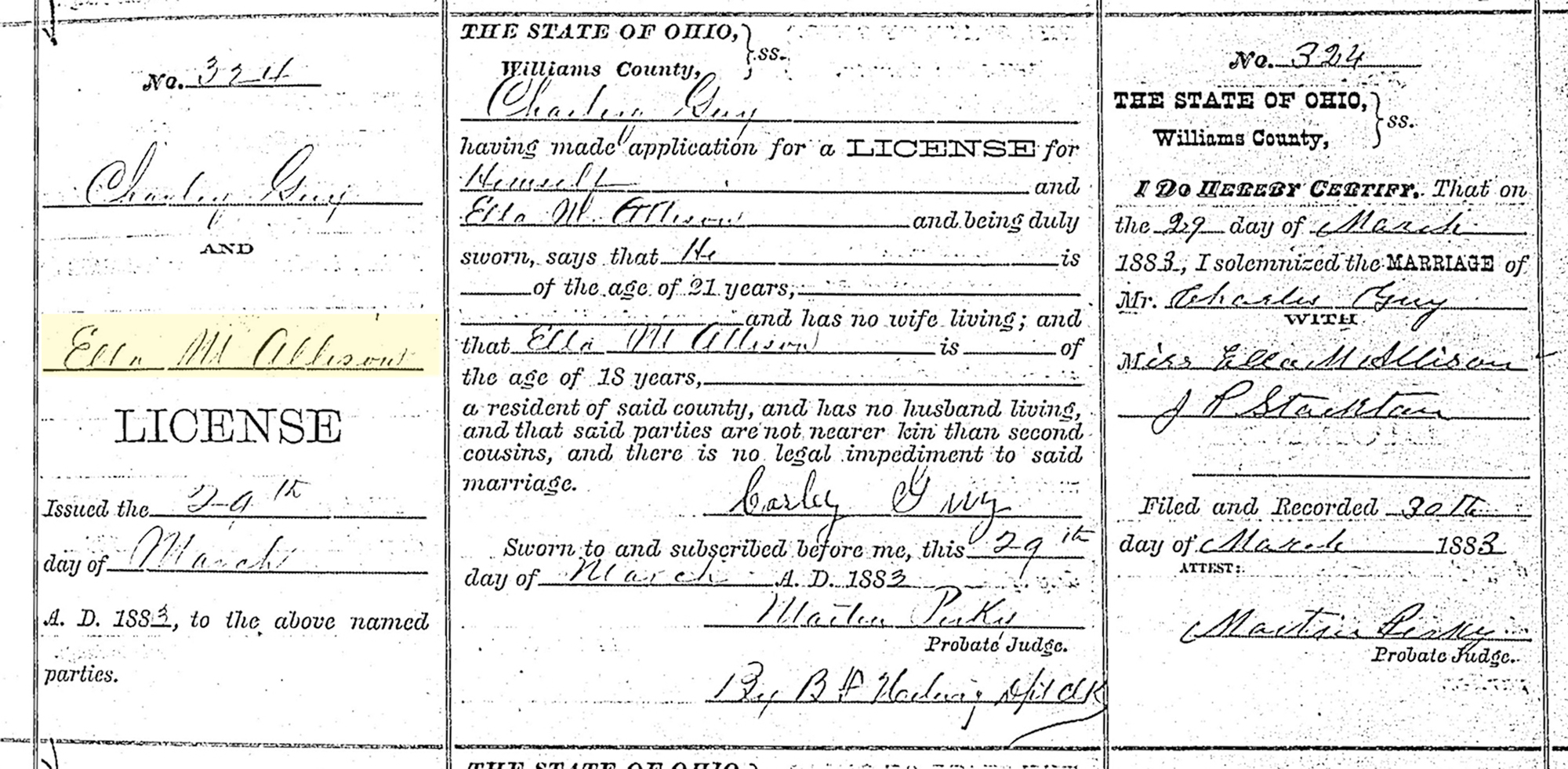 • Marriage Image: 29 March 1883, in , Williams County, OH. • They appeared on the 1885 Nebraska State Census in Still Water Precinct, Webster County, NE on 5 June 1885. 2 • They appeared on the 1900 US Census in Guide Rock, NE on 4 June 1900. 3 • They appeared on the 1910 US Census in Guide Rock, NE on 5 May 1910. 4 • They appeared on the 1920 US Census in Guide Rock, NE on 7 January 1920. 5 • They appeared on the 1930 US Census in Guide Rock, NE on 22 April 1930. 6
