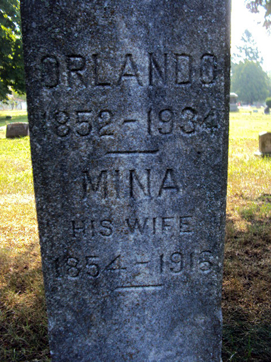 Orlando married Mina Cameron, daughter of John D. Cameron and Margaret Lee, on 1 December 1872.1 2 3 4 5 (Mina Cameron was born on 17 April 1854 in , Holmes County, OH,3 4 5 12 13 died on 8 January 1916 in Swan Creek Township, Fulton County, OH 12 13 and was buried on 10 January 1916 in Swanton Cemetery, Swanton, OH 12 13.). The cause of her death was Tubercular Peritonitis.10