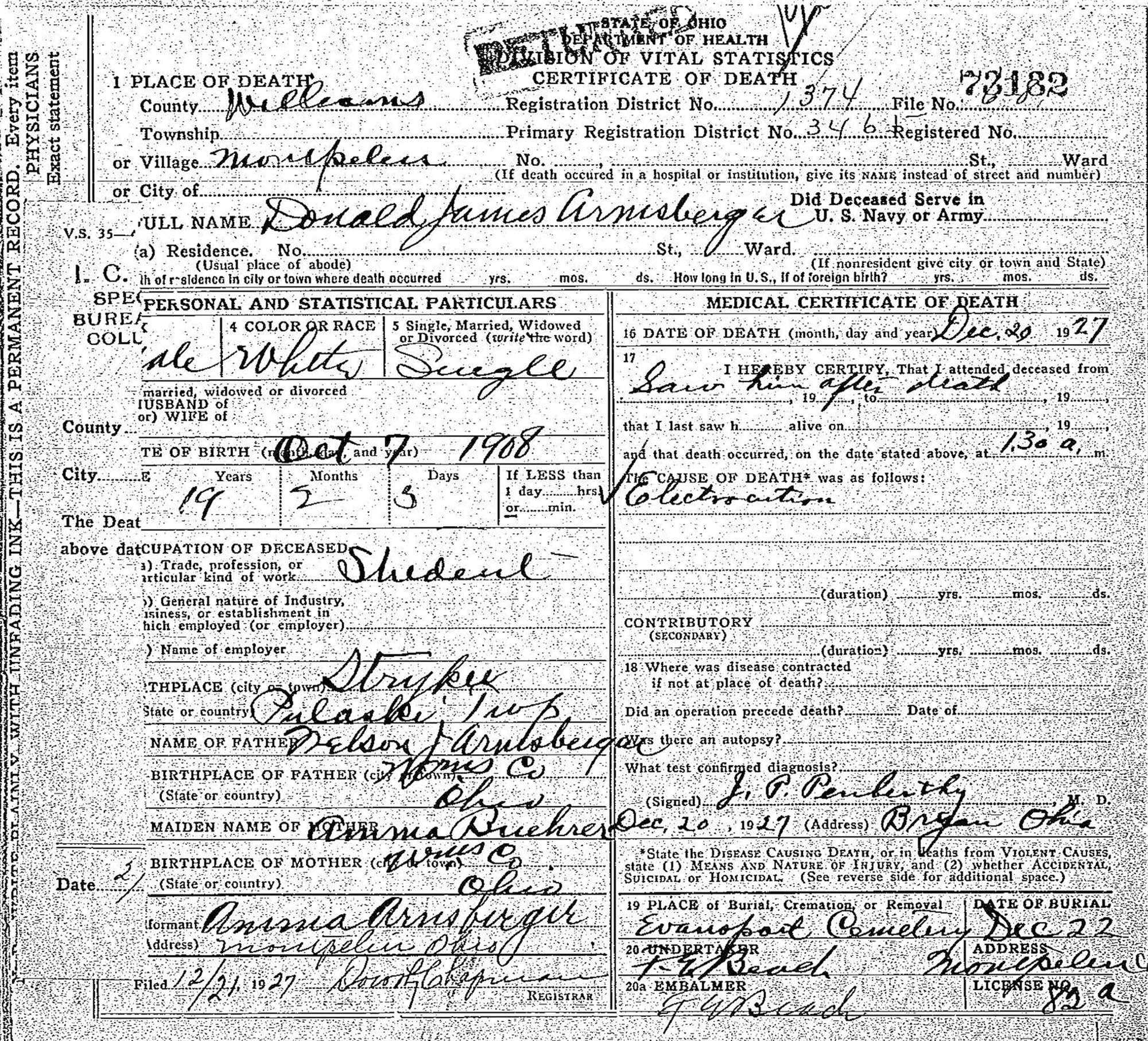 • Death Image: 20 December 1927, in Montpelier, OH.