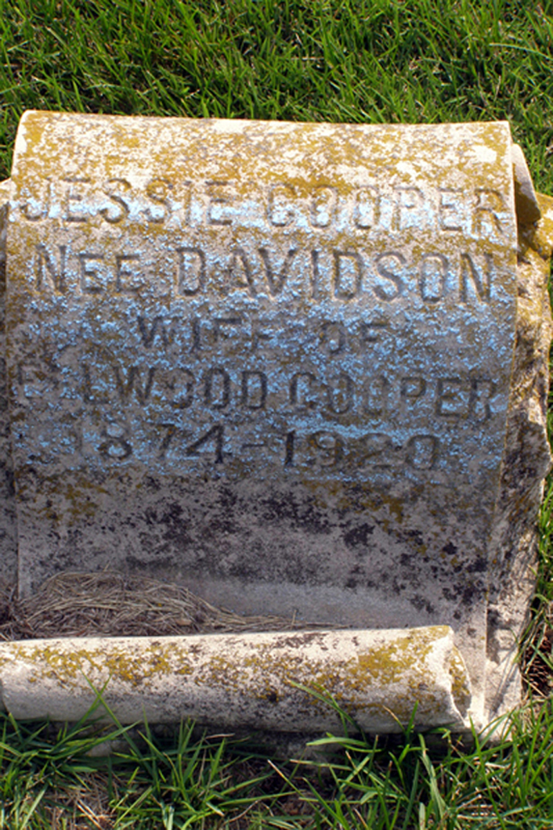 • She was buried after 16 April 1920 in the Tecumseh Cemetery in Tecumseh, NE. Jessie married Ellwood Cooper on an unknown date.1 (Ellwood Cooper was born about 1869 and died on an unknown date.) |