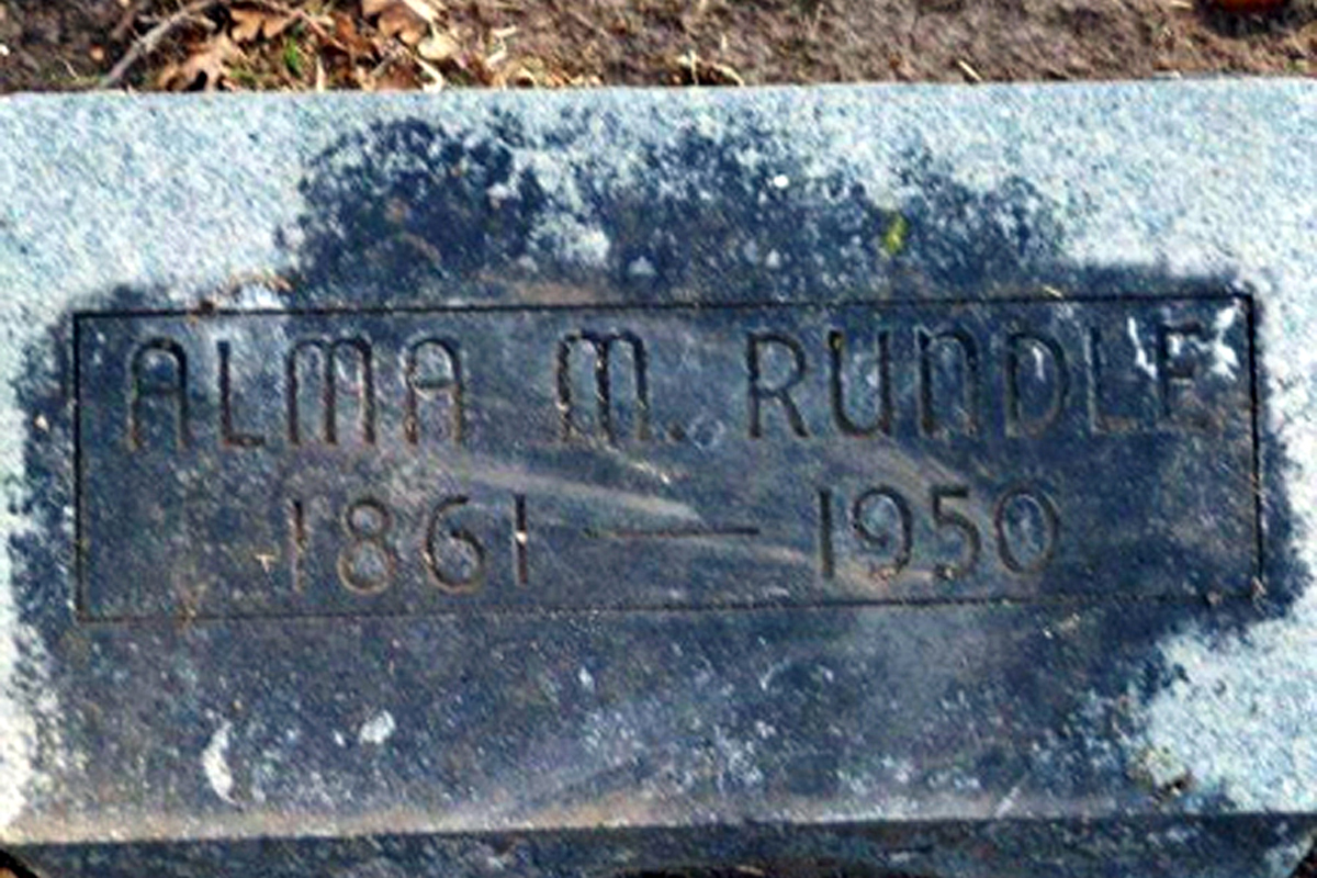 • She was buried after 1 September 1950 in the Stockton Rural Cemetery in Stockton, CA. Alma married John T. Rundle in 1884.1 2 The marriage ended in divorce. (John T. Rundle was born in March 1856 in Wisconsin 1 2 and died after 1 April 1910.)