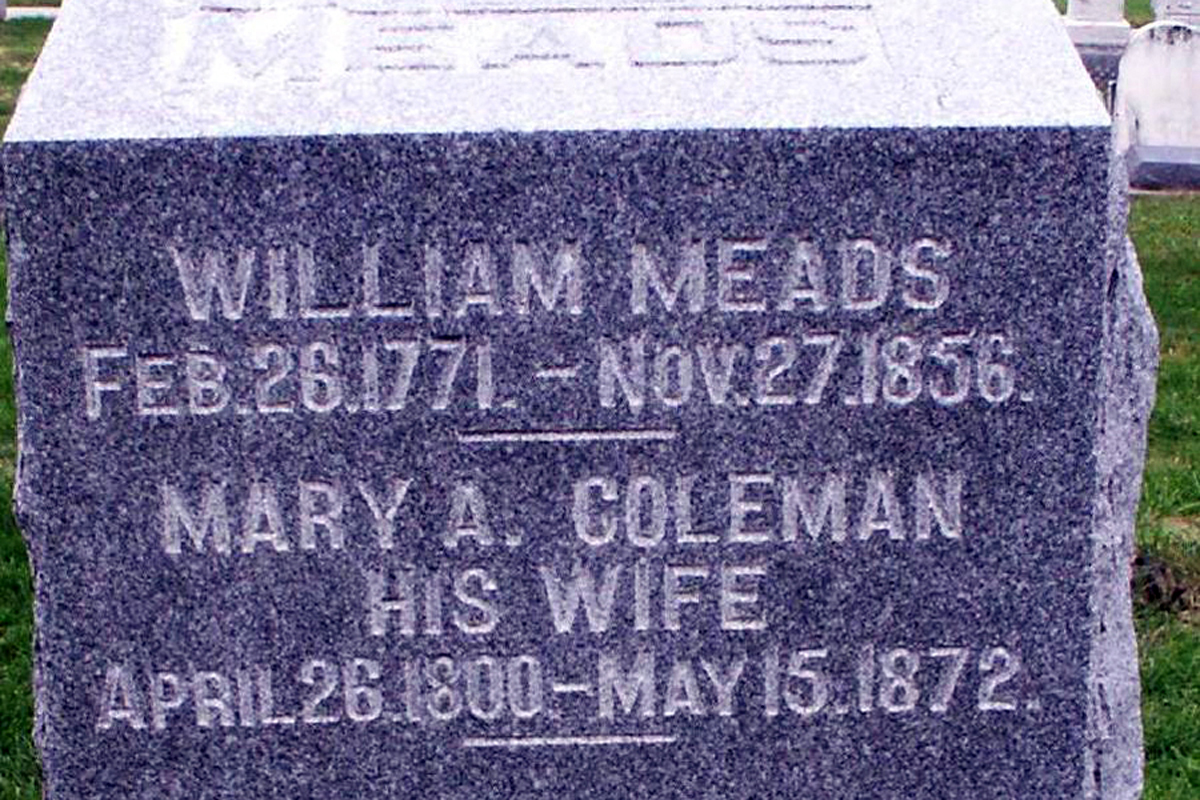 The MEADE or MEADS family lived in Calvert County east of Patuxent River and in the neighborhood of Hunting Creek. Several branches of this family descended from Thomas, John and William MEADS, the sons of John MEADE. Like Mary and her husband, descendants of one or more of these brothers went to Queen Anne's County, Maryland, where they spelled their name MEEDS and established families there. |