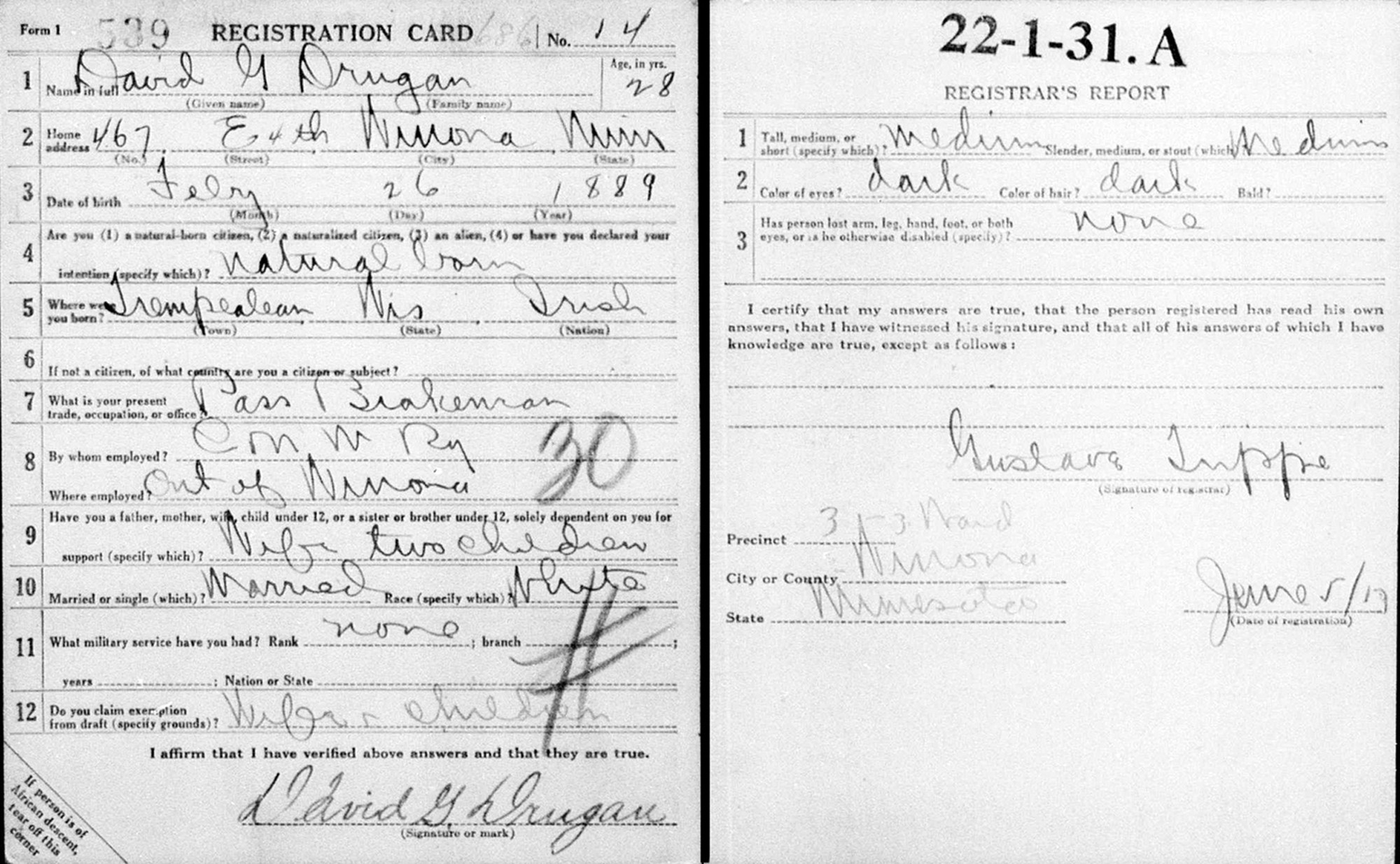 • On 5 June 1917, he registered for the World War I Draft at Winona, MN.