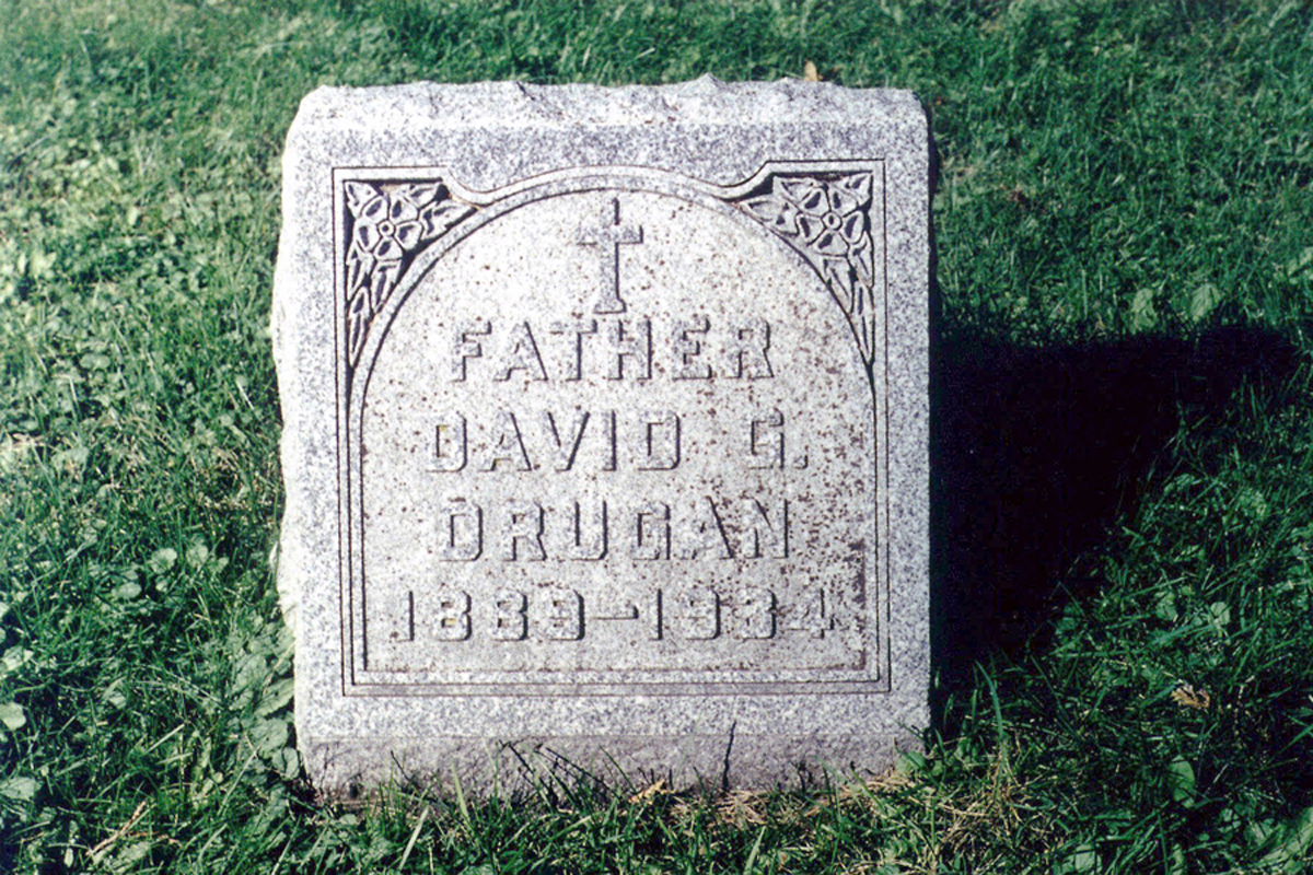 • His obituary was published in the Winona Republican-Herald on 8 October 1934 in Winona, MN. Funeral services for David G. Drugan, 209 Grand Street, were conducted at 9 a.m. today at the St. Thomas Pro-Cathedral, the Rev. Louis O'Day officiating. Burial was in St. Mary's cemetery. Pallbearers were O. W. Dubois, W. I. Millier, L. C. Stephans, O. T. Sheron, Joseph Jessesski, and A. B. Hassett.