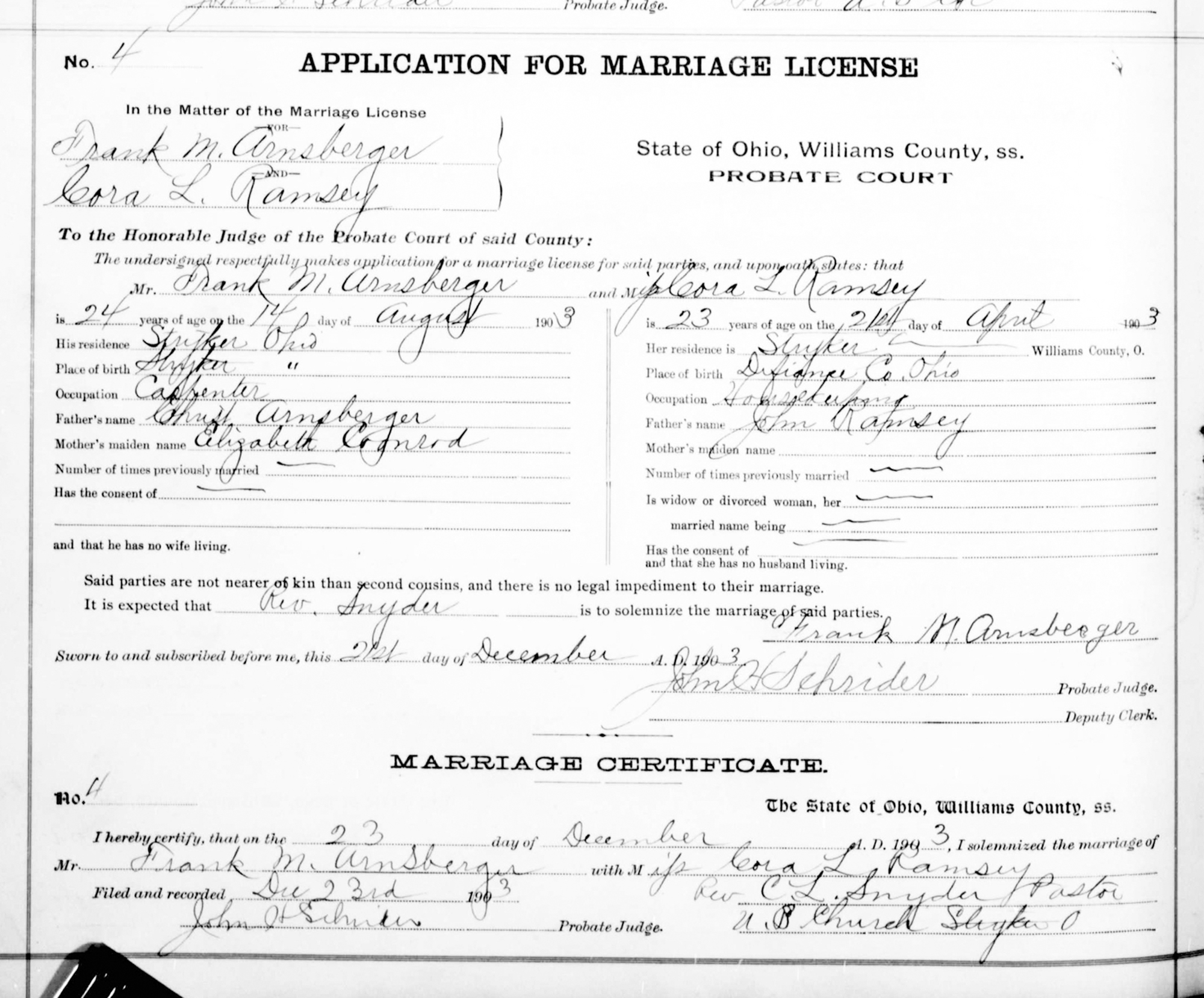 • Marriage Image: 23 December 1903, in , Williams County, OH. • They appeared on the 1910 US Census in Stryker, OH on 16 April 1910. 2