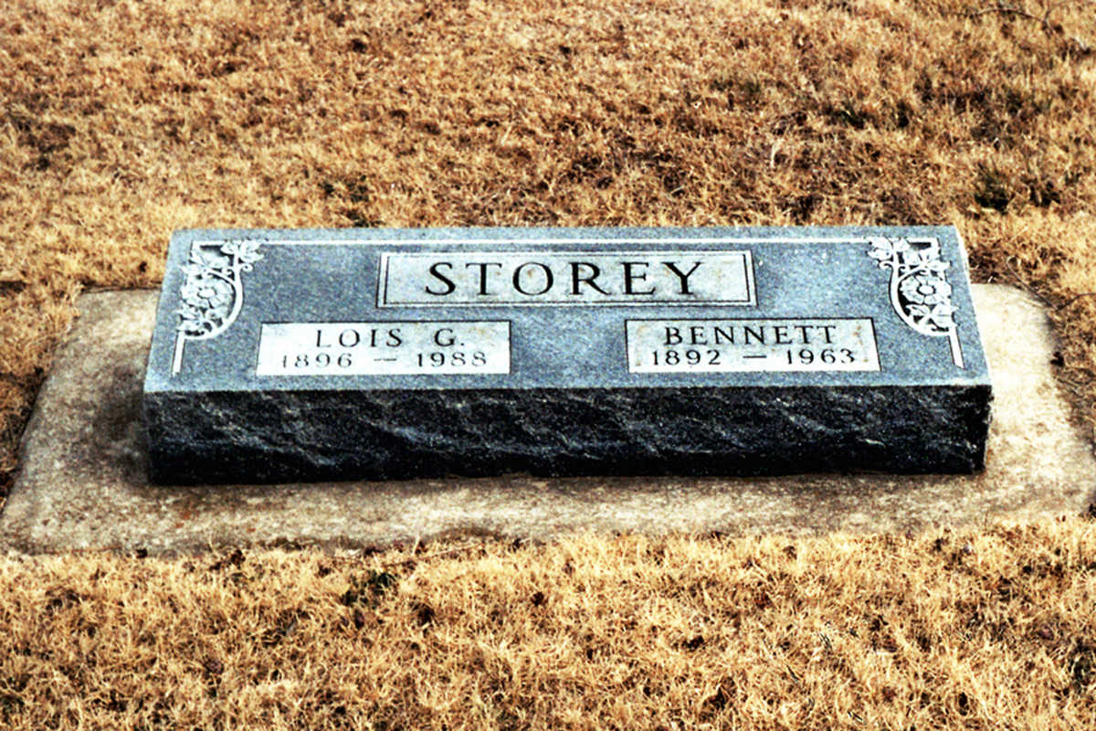 • She was buried after 16 July 1988 in the Littleton Cemetery in Mulvane, KS. Lois married Bennett Storey Jr, son of Bennett Storey and Rozenia Darnell, on 5 May 1921 in Wellington, KS.1 2 3 (Bennett Storey Jr was born on 5 July 1892 in Mulvane, KS,1 2 10 11 12 died on 2 April 1963 in Mulvane, KS 10 11 12 and was buried after 2 April 1963 in Littleton Cemetery, Mulvane, KS 11.)