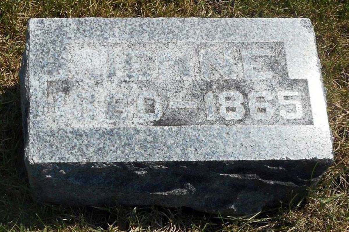 Find A Grave, database and images (https://www.findagrave.com/ ); accessed 07 April 2019), memorial page for Jenne Lightfoot (1860\endash 1865), Find A Grave Memorial no. 6714436, citing Hebron Cemetery, Hebron, Porter County, Indiana, USA