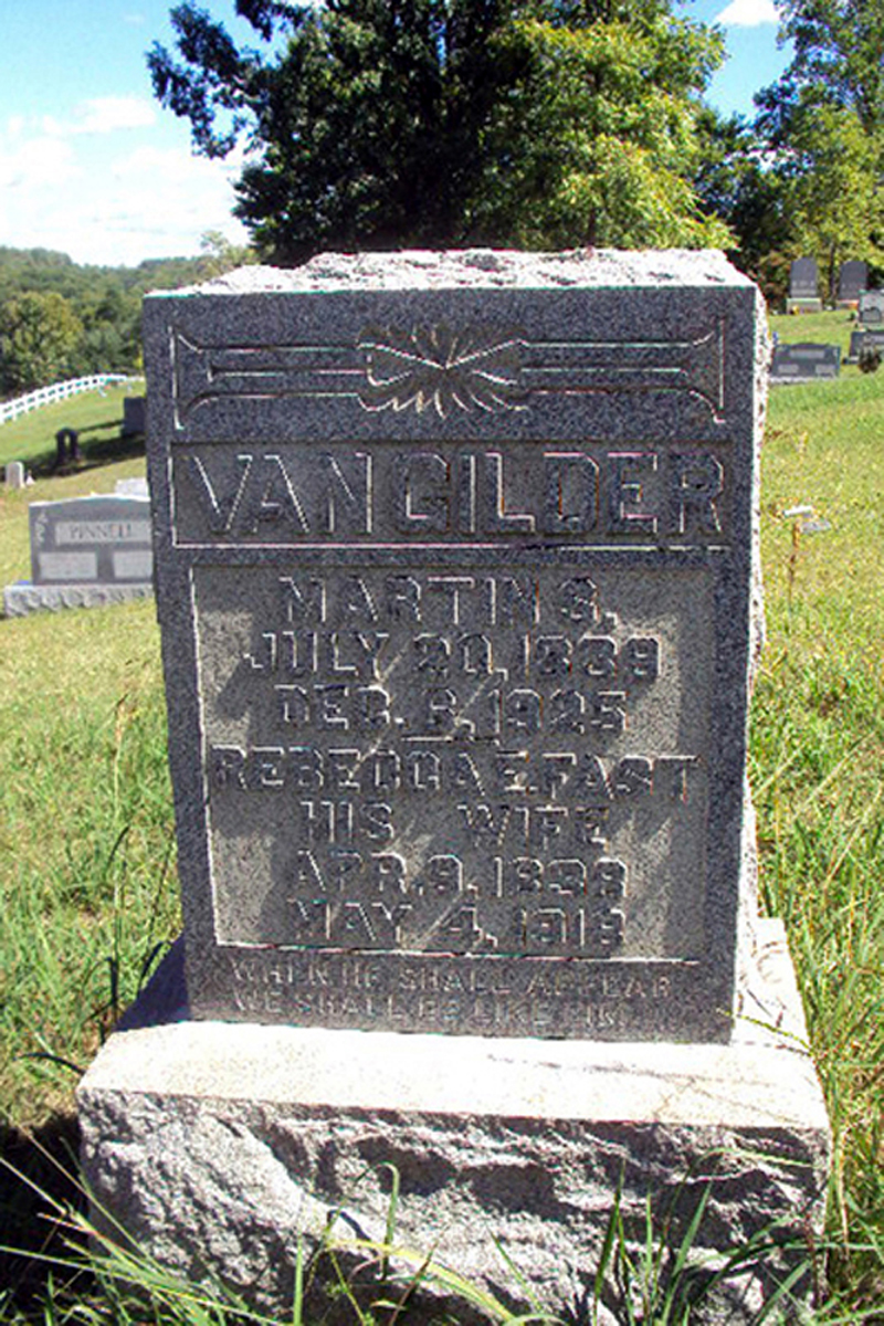• She was buried after 4 May 1918 in the Mount Zion Cemetery in Fairmont, WV. Rebecca married Martin Steenrod Van Gilder, son of Frederick Van Gilder and Susanah Longstreth, on 1 January 1865 in , Marion County, WV.1 2 3 4 (Martin Steenrod Van Gilder was born on 20 July 1839 in , Monongalia County, VA,3 4 10 11 12 died on 6 December 1925 in Union District, Marion County, WV 11 12 and was buried after 6 December 1925 in Mount Zion Cemetery, Fairmont, WV 12 13.)