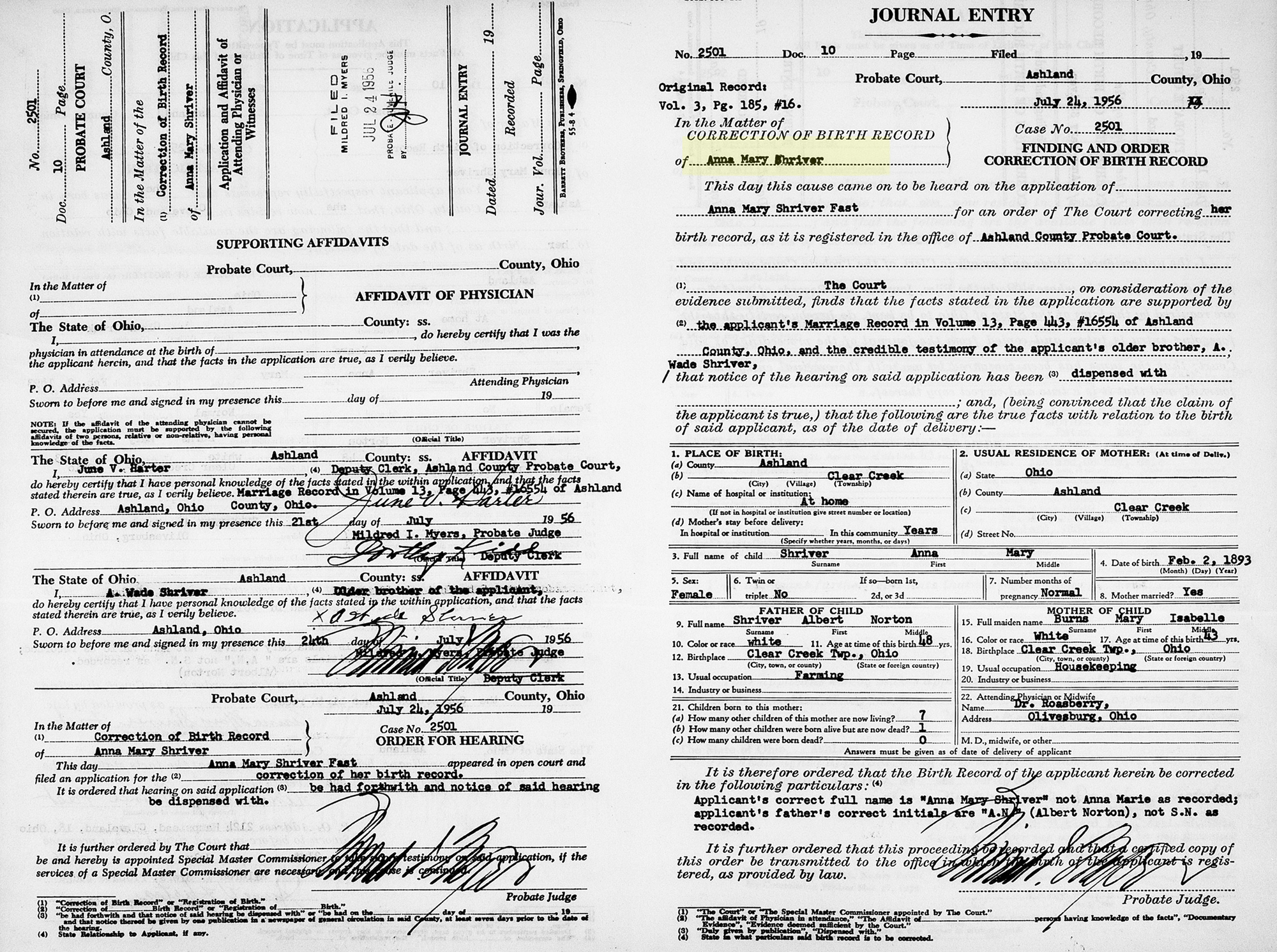 Name: Anna Mary Shriver Fast Event Type: Birth Event Date: 02 Feb 1893 Event Place: Clear Creek, Ashland, Ohio, United States Gender: Female Father's Name: Albert Norton Shriver Mother's Name: Mary Isabelle Burns