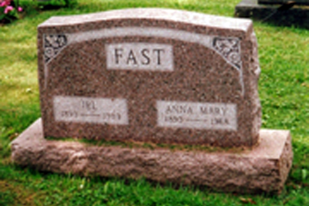 Anna married Irl Fast, son of Elvin Francis Fast and Mary Francis Mitchelson, on 6 September 1922 in Ashland County, OH. (Irl Fast was born on 18 January 1893 in Polk, OH,3 4 died on 25 February 1983 in Elyria, OH 1 4 and was buried after 25 February 1983 in Ashland, OH 4.)