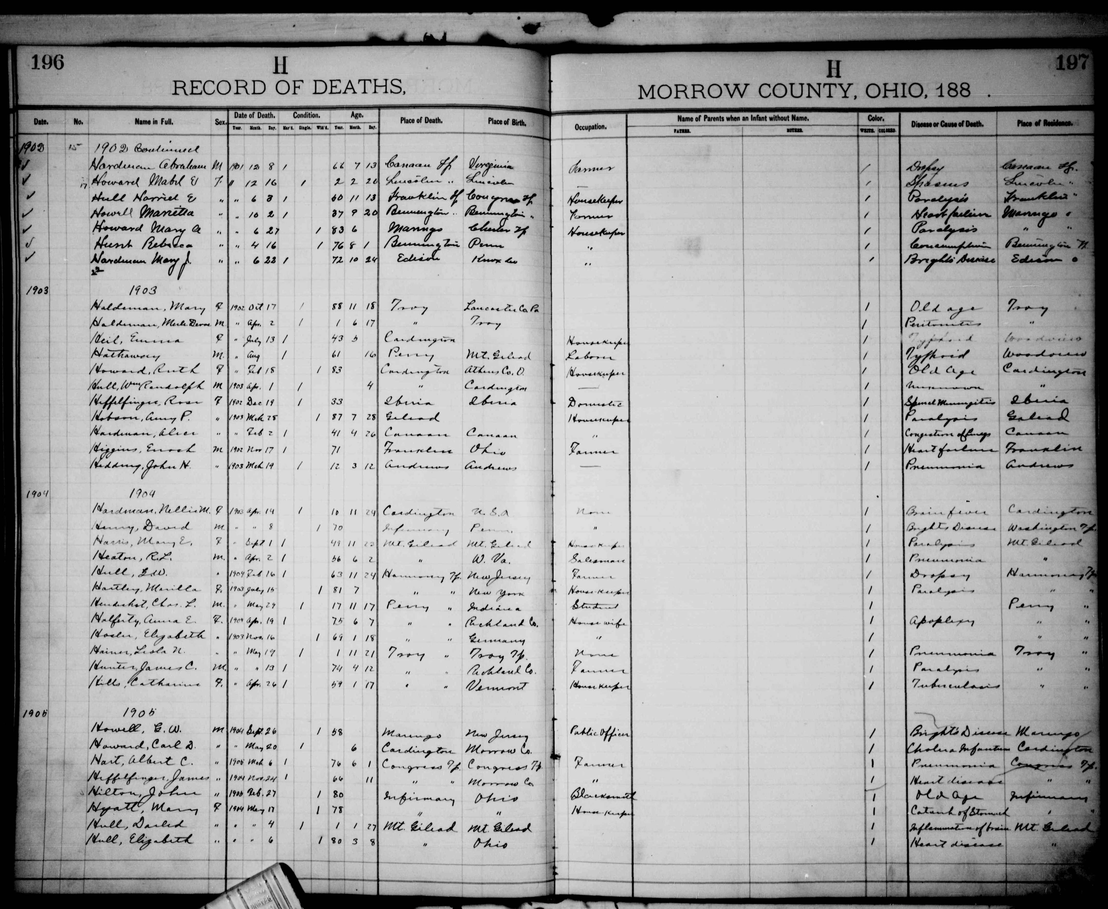 • Death Image: 17 November 1902, in Franklin Township, Morrow, OH. 5 Name: Enoch Higgins