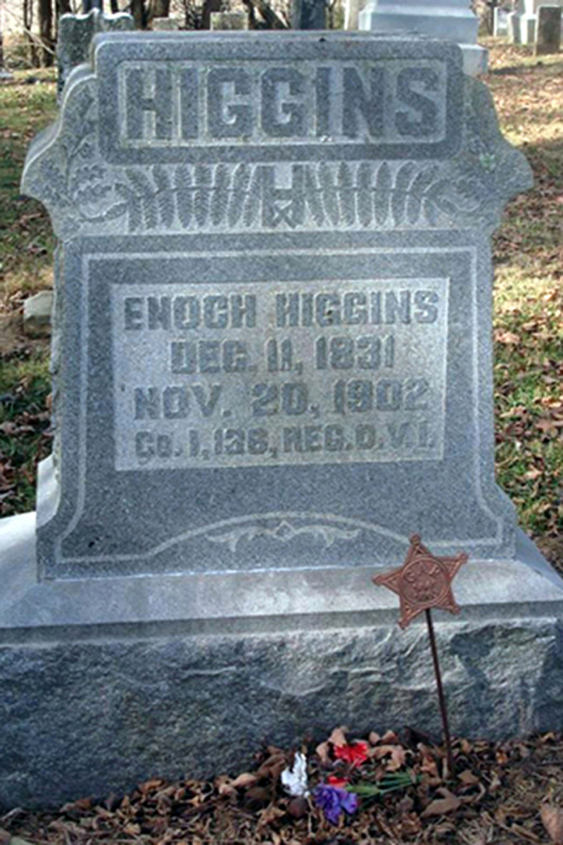 • Military: Company I, 136th Regiment, Ohio Volunteer Infantry, 2 May 1864-31 August 1864, , Morrow County, OH. 6 7 Enlisted as a Private. Enoch Higgins..Co. I..136th Ohio Inf..2 May 1864 - 31 Aug 1864 • He appeared on the 1870 US Census in Franklin Township, Morrow, OH on 8 July 1870. 2 • He appeared on the 1880 US Census in Franklin Township, Morrow, OH on 21 June 1880. 3 • He appeared on the 1900 US Census in Franklin Township, Morrow, OH on 1 June 1900. 4 • His occupation in November 1902 was a Farmer in Franklin Township, Mercer, OH. 5