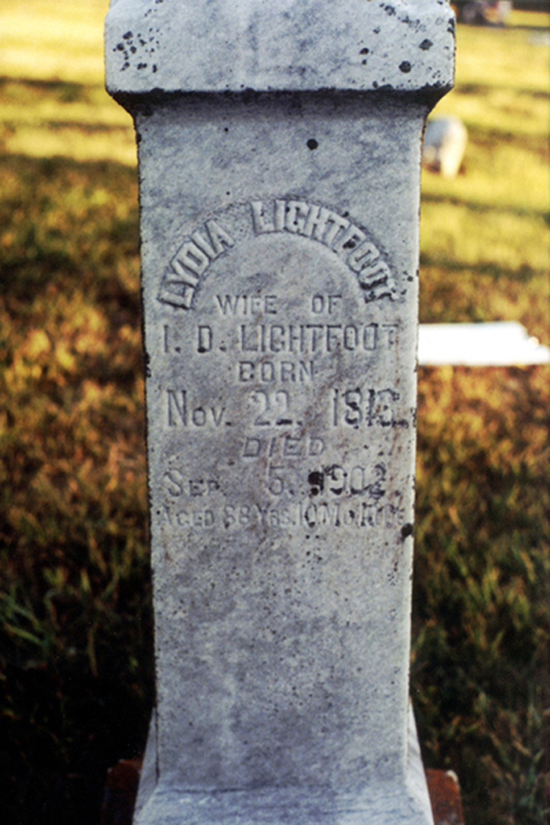 2 Cindy Barnes, "Lightfoot Family," database, RootsWeb ((http://wc.rootsweb.com/cgi-bin/igm.cgi?db=:2605658 : accessed 15 Dec 2013).