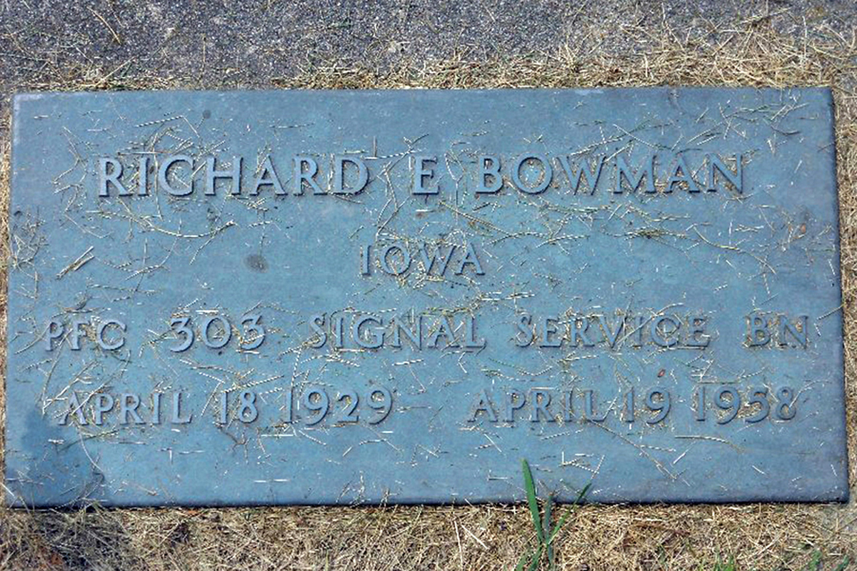 Sudden death came to Richard Bowman April 19, 1958 at the age of 29 years and one day. He was critically injured Friday morning while engaging in his work of plowing, when a rifle accidentally discharged, striking him on the right side of his face. Rushed to the University hospitals in Iowa City, he passed away 24 hours later at 11:05 AM Saturday.