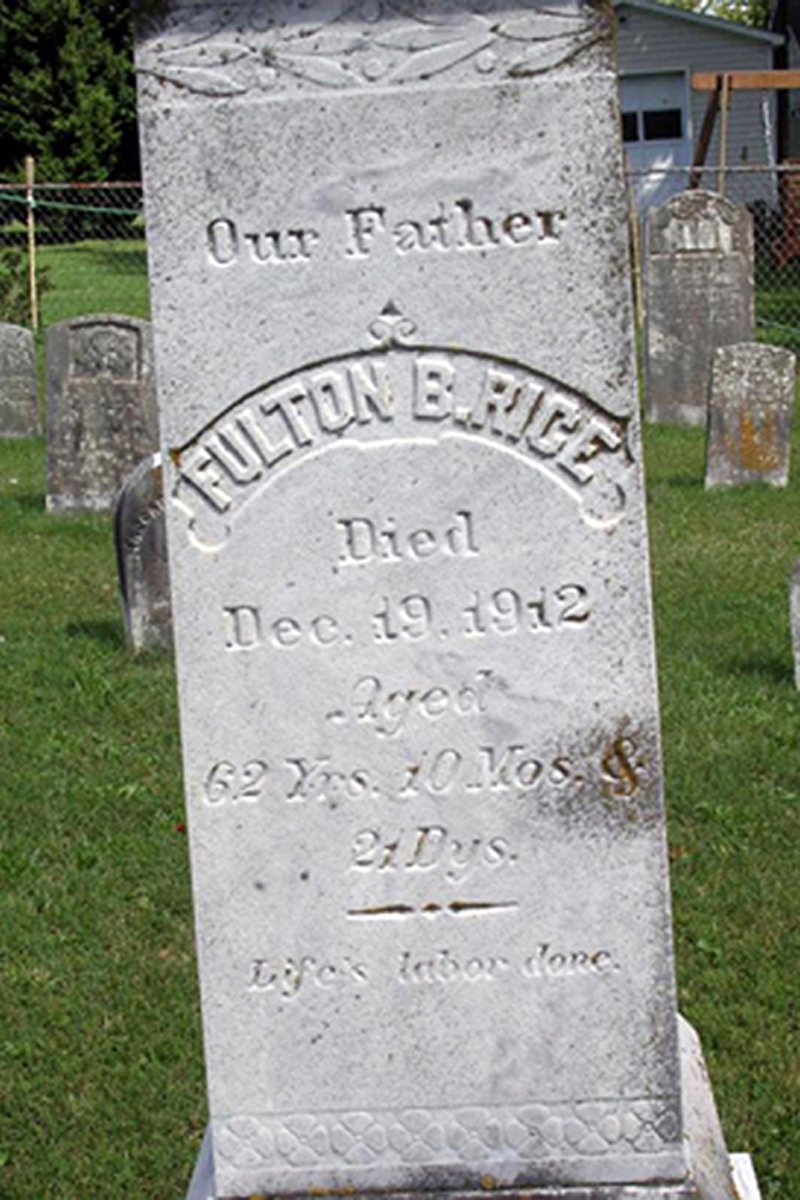 • He was buried after 12 December 1912 in the Jefferson United Methodist Church Cemetery in Jefferson, MD. Fulton married Sarah Frances Shafer, daughter of George Shafer and Mary Magdalena Darner, on 6 December 1883 in , Frederick County, MD. (Sarah Frances Shafer was born on 24 November 1858 in Middletown, MD,3 4 5 6 7 died on 10 February 1938 in , Frederick County, MD 3 and was buried after 10 February 1938 in Jefferson, MD 3 7.) |