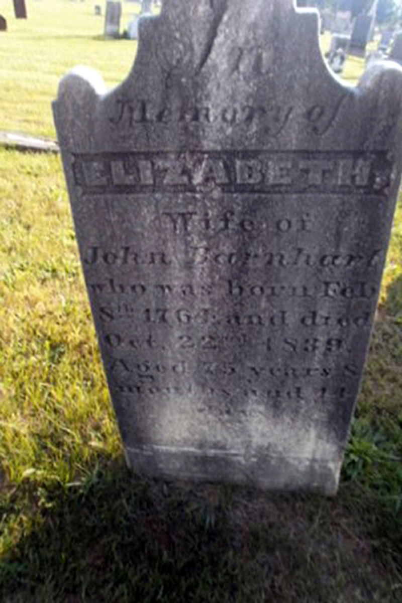 • She was buried after 22 October 1839 in the Saint Johns Cemetery in Shiremanstown, PA. Elizabeth married John Barnhart in 1785.1 (John Barnhart was born on 14 February 1760,1 3 died on 21 March 1807 in East Pennsboro Township, Cumberland, PA 1 3 and was buried after 21 March 1807 in Hampden Township, Cumberland, PA 1 3.) |