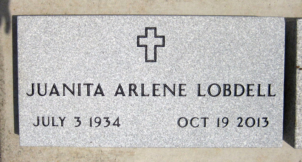 4 Find A Grave, database and images (https://www.findagrave.com/ ); (accessed 01 November 2019), memorial page for Juanita Arlene Lobdell (3 Jul 1934-19 Oct 2013), Find A Grave Memorial no. 130159874, citing Saint Marys Cemetery, Nichols, Muscatine County, Iowa, USA