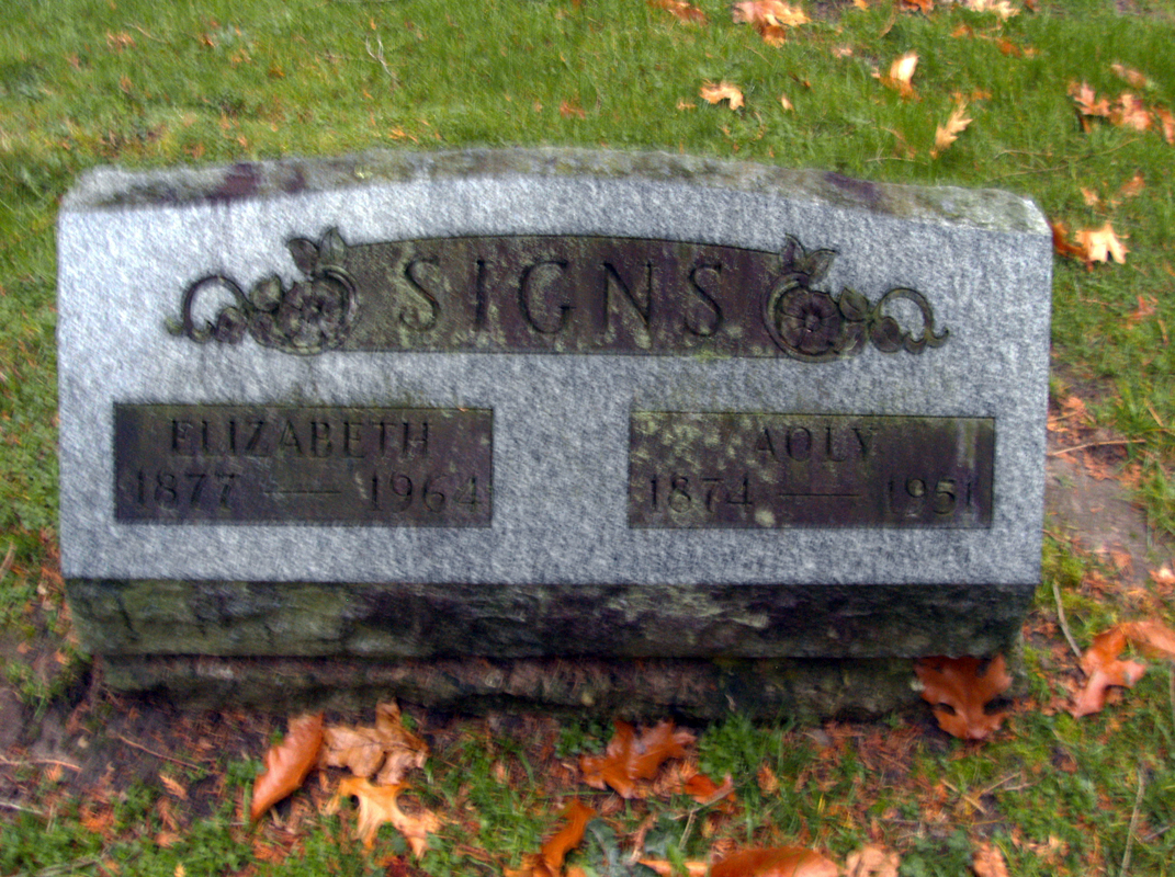 11 Find A Grave, database and images (https://www.findagrave.com/ ); accessed 24 June 2021, memorial page for Aoly Signs (1874-8 Jan 1951), Find a Grave Memorial ID 103363472, citing Lakeside Cemetery, Lake Odessa, Ionia County, Michigan, USA