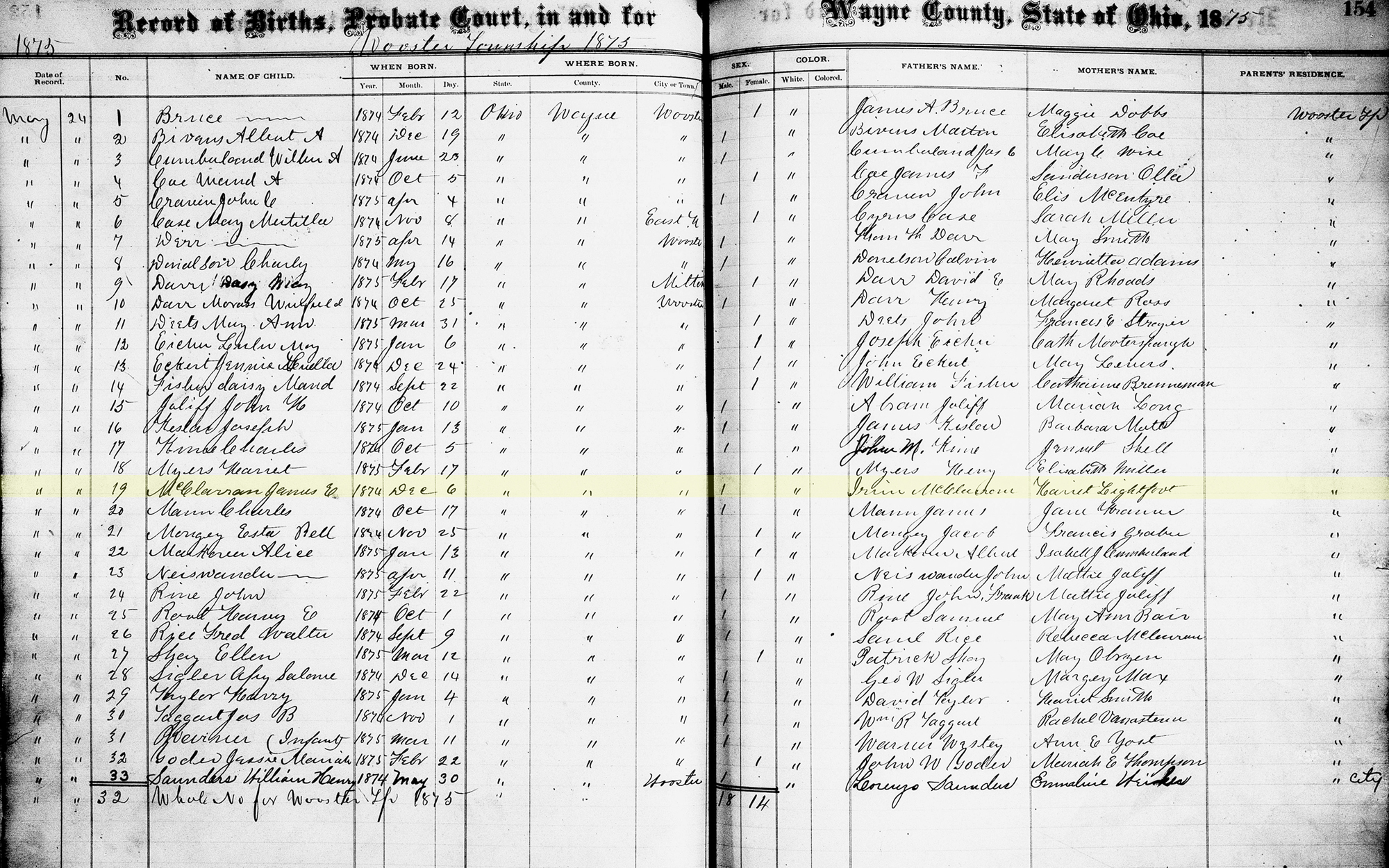 • Birth Image: Image, on 6 December 1874, in Wooster Township, Wayne County, OH. • He appeared on the 1880 US Census in Wooster Township, Wayne County, OH on 1 June 1880. 4 • He appeared on the 1900 US Census in Wooster, Wayne, Ohio, United States on 7 June 1900. 5 • He appeared on the 1910 US Census in Wooster Township, Wayne County, OH on 18 April 1910. 1 • He appeared on the 1920 US Census in Wooster, Wayne, Ohio, United States on 9 January 1920. 2