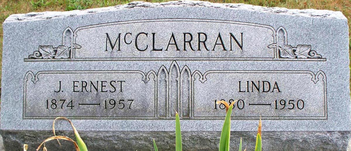 6 Find A Grave, database and images (https://www.findagrave.com/ ); accessed 9 April 2019), memorial page for J Ernest McClarran (1874\endash 1957), Find A Grave Memorial no. 74936216, citing Wooster Cemetery, Wooster, Wayne County, Ohio, USA