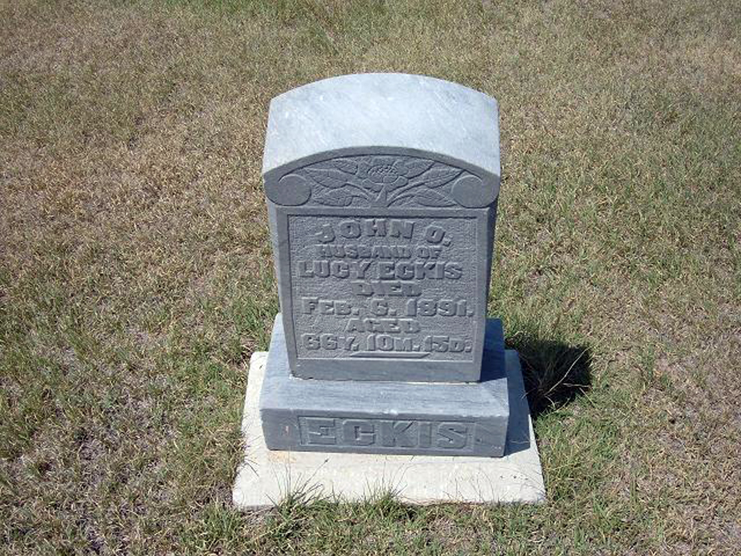 8 Find A Grave, database and images (https://www.findagrave.com/ ); accessed 19 March 2021, memorial page for John Orr Eckis (15 Mar 1835-6 Feb 1891), Find a Grave Memorial no. 40708770, citing Wallace Township Cemetery, Wallace, Wallace County, Kansas, USA