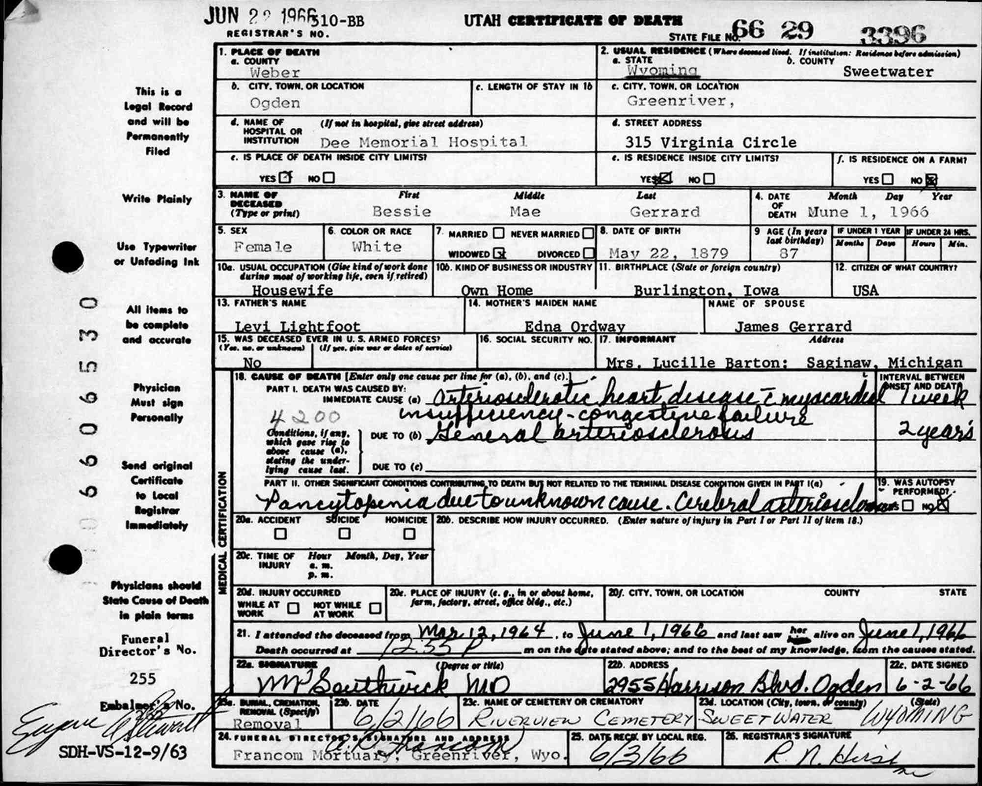 • Death Image: 1 June 1966, in Ogden, UT. 10