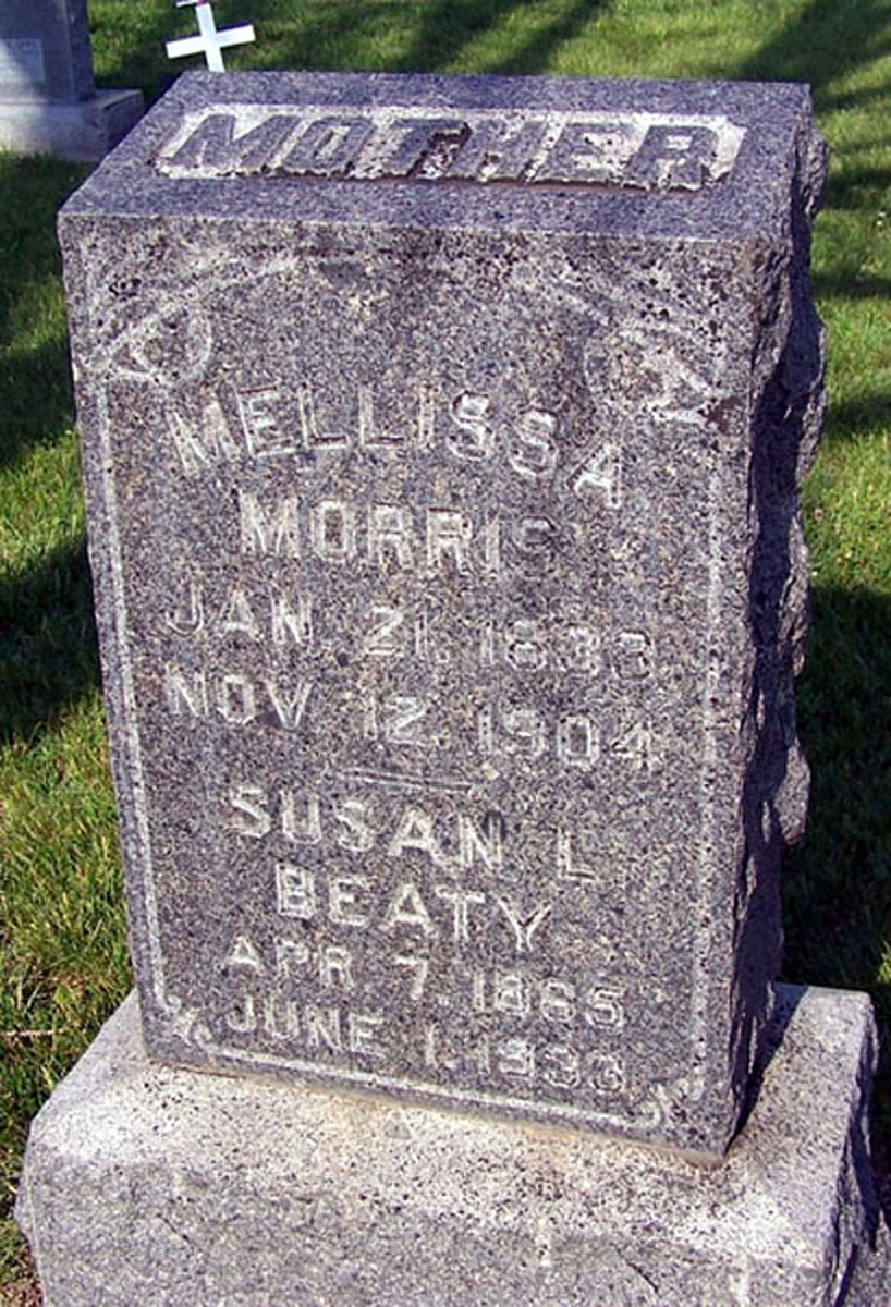 2 1860 U.S. census, population schedule, West Point Township, Lee County, Iowa, United States, p. 11, family 69, Melissa M. Courtney and John Morris; index and images, FamilySearch.org (accessed 12 Aug 2019); citing National Archives and Records Administration microfilm M653, roll 330.