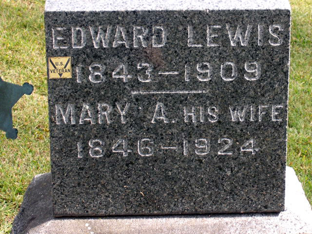 5 Find A Grave, database and images (https://www.findagrave.com/ : accessed 13 Feb 2018), memorial page for Edward Lewis; Find A Grave Memorial no. 52724371, citing Oak Grove Cemetery, Mill Creek, La Porte County, Indiana, USA
