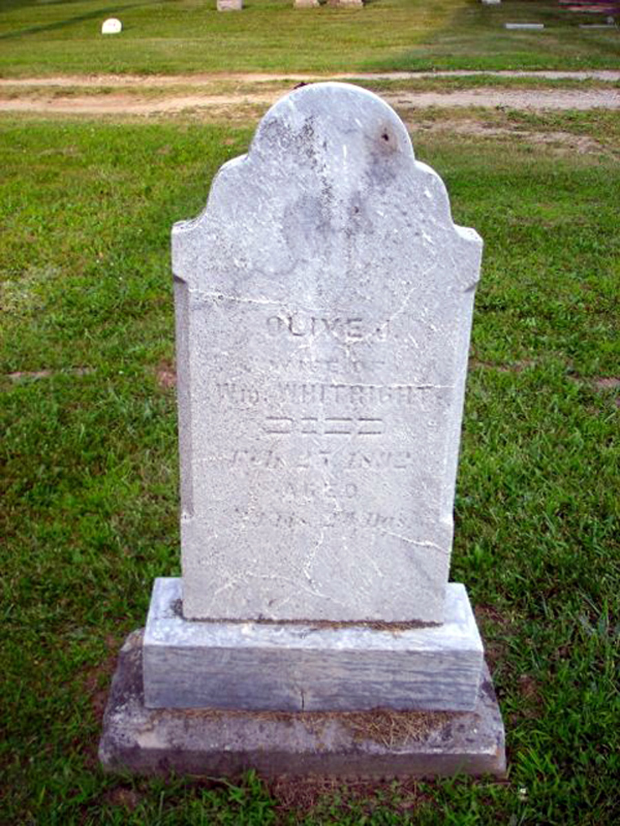 5 Find A Grave, database and images (https://www.findagrave.com/ ); accessed 27 April 2021, memorial page for Olive J. Raidel Whitright (1853-25 Feb 1892), Find a Grave Memorial ID 35581106, citing West Haven Cemetery, New Haven, Shiawassee County, Michigan, USA