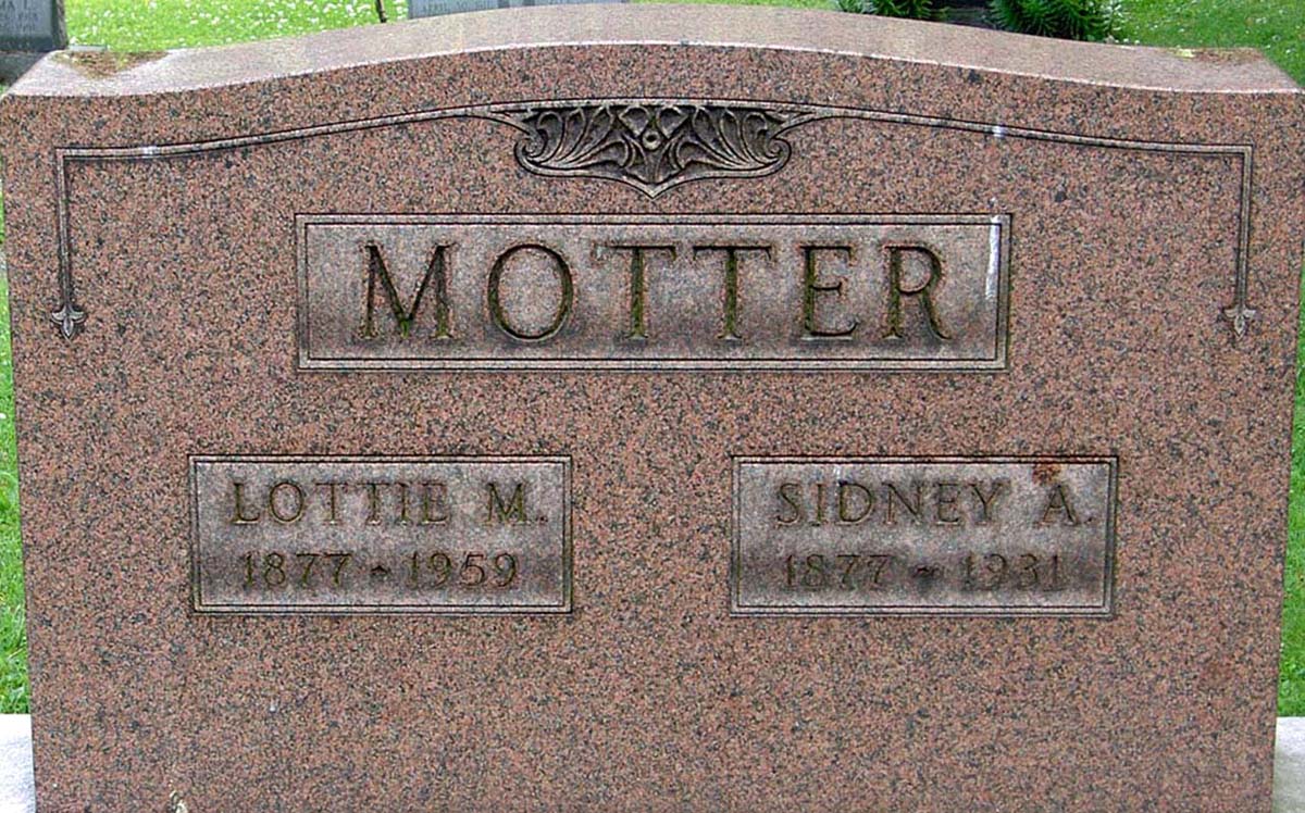 10 Find A Grave, database and images (https://www.findagrave.com/ ); accessed 19 May 2021, memorial page for Sidney A Motter (Jul 1877-1931), Find a Grave Memorial ID 13960565, citing Ashland Cemetery, Ashland, Ashland County, Ohio, USA