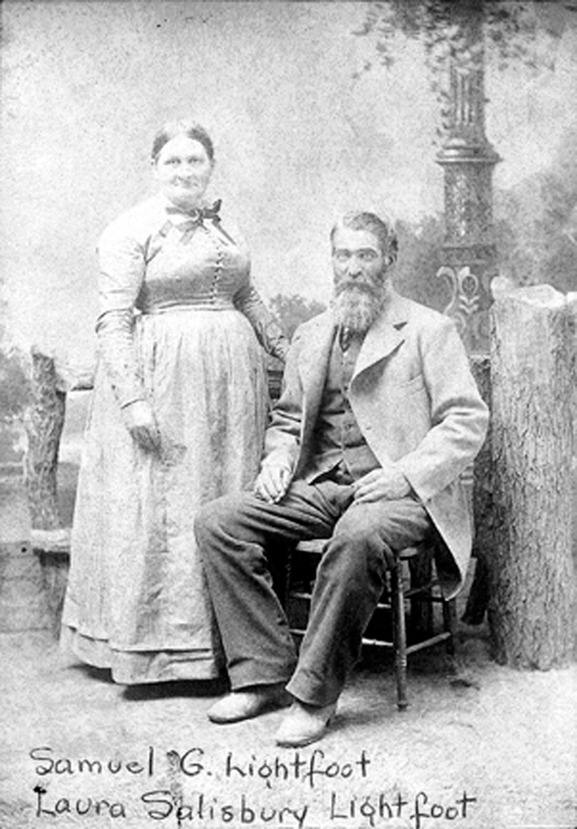 5 1870 U.S. census, population schedule, North Salem Precinct, Marion County, Oregon, p. 75, dwelling 641, family 589, Samuel Greenberry Lightfoot and Laura Maria Salisbury; index and images, FamilySearch.org (accessed 3 Sep 2010); citing National Archives and Records Administration microfilm M593.