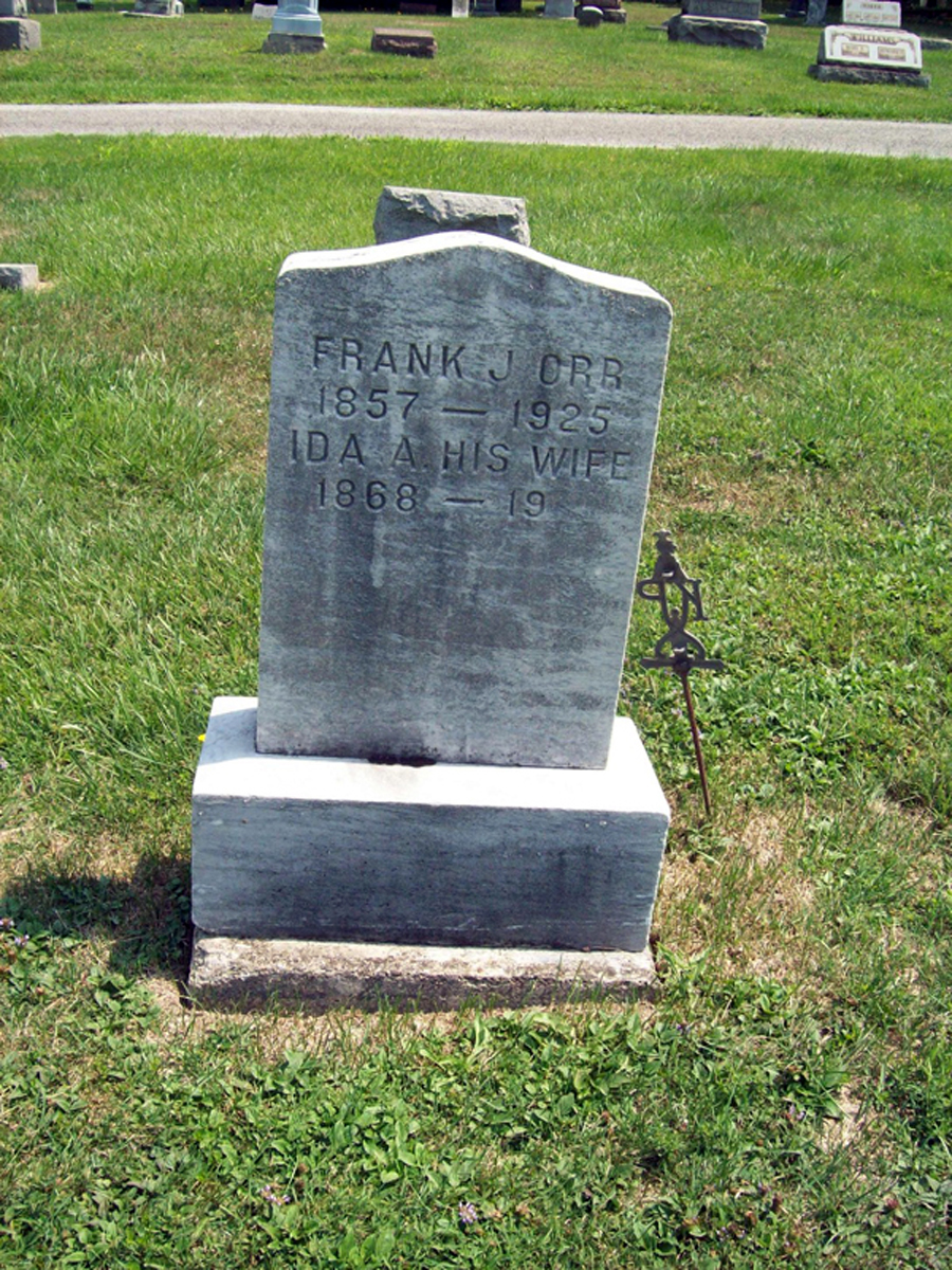 • She was buried on 3 December 1951 in the Southington Center Cemetery in Southington, OH. Ida married Francis Joshua Orr, son of Joshua Francis Orr and Sarah Esther Fitch, on 23 November 1887 in , Trumbull County, OH.1 2 3 4 (Francis Joshua Orr was born on 1 April 1857 in Milton Township, Mahoning County, OH,4 8 9 10 11 died on 11 March 1925 in Warren, OH 12 13 and was buried on 13 March 1925 in Southington Center Cemetery, Southington, OH 12 13.)