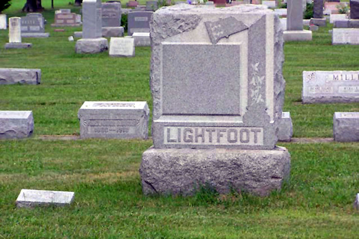 "Ohio, Porter County Death Index, 1884-1927," index, Northwest Indiana Genealogical Society (http://www.rootsweb.ancestry.com/~innwigs/Archives/DeathIndex-PorterCounty.htm : accessed 26 Jan 2015), entry for John Lightfoot;