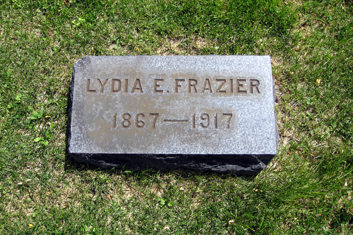 • She was buried on 28 November 1917 in the Olney Cemetery in Pendleton, OR. Lydia married Charles Alexander Frazier, son of Wiley Cope Frazier and Rebecca H. Leard, on 21 May 1889 in Vinson, OR.1 2 (Charles Alexander Frazier was born in August 1857 in Geyserville, CA,2 6 7 8 died on 27 April 1924 in Colfax, WA 1 8 and was buried on 30 April 1924 in Pendleton, OR 8.)