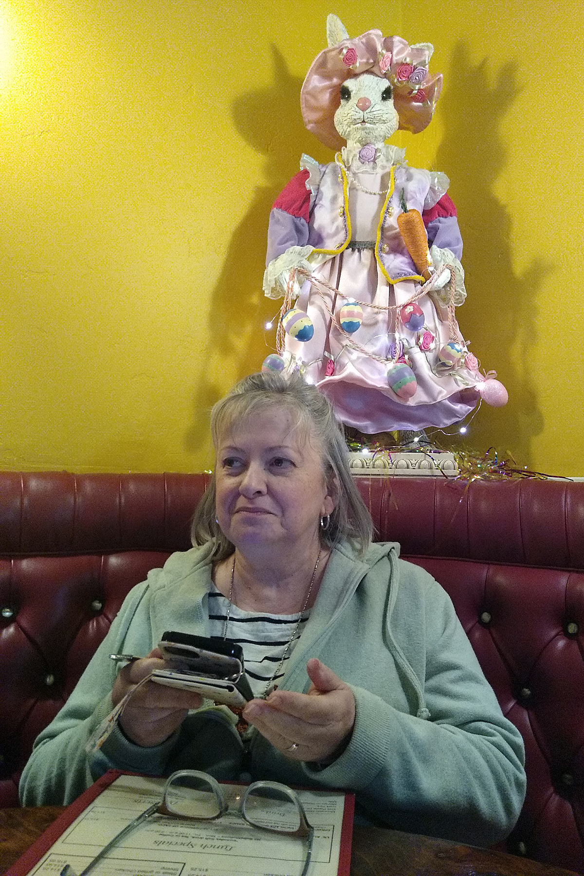 Celebrating Carol's Birthday March 12, 2020 at the Olive Garden restaurant in Turlock, CA