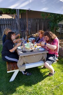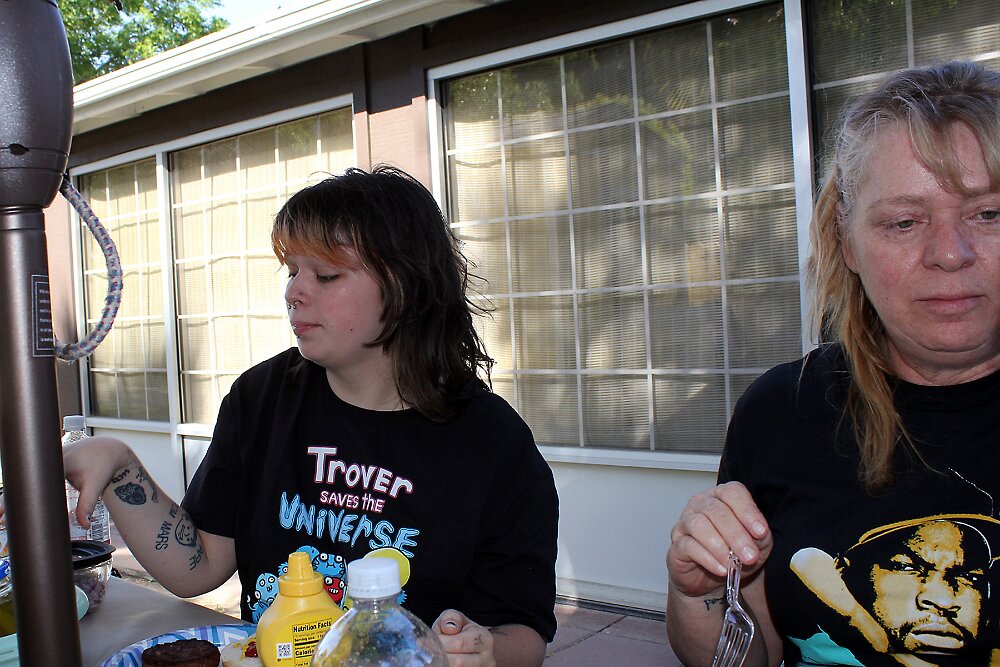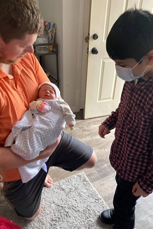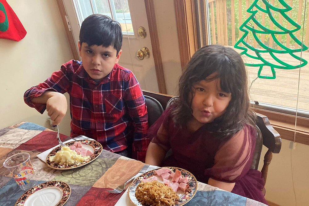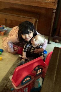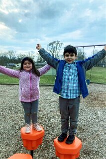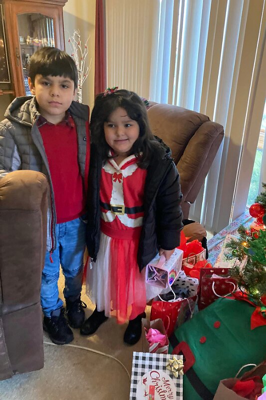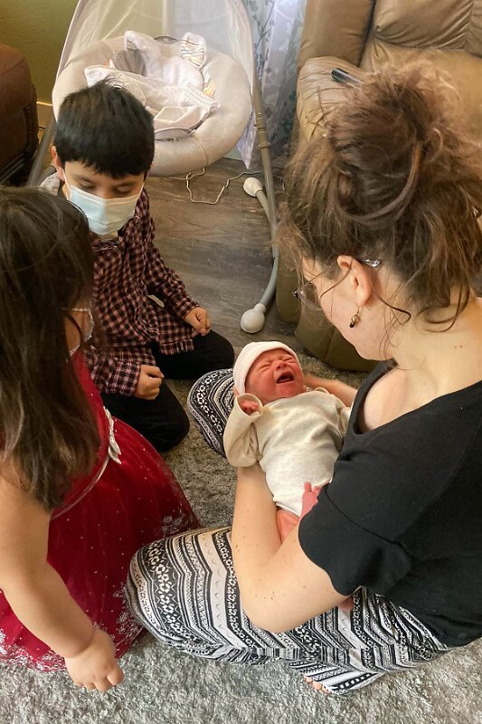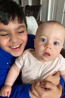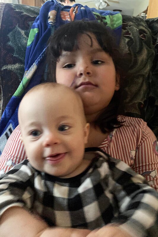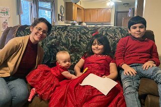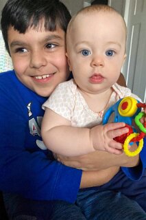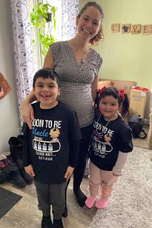 Vanessa is about 6 months pregnant and the kids are wearing t-shirts saying that they will soon be an aunt and an uncle.